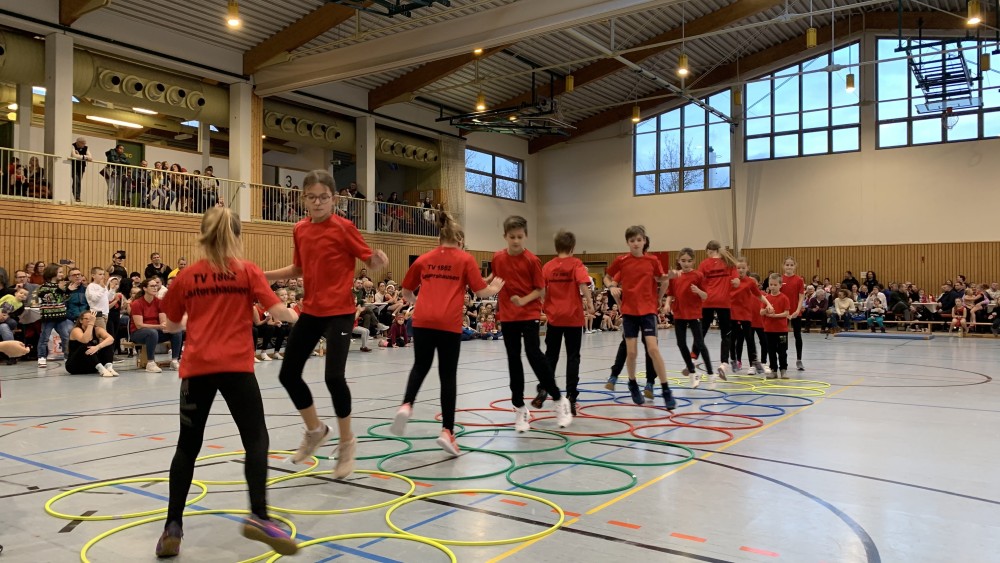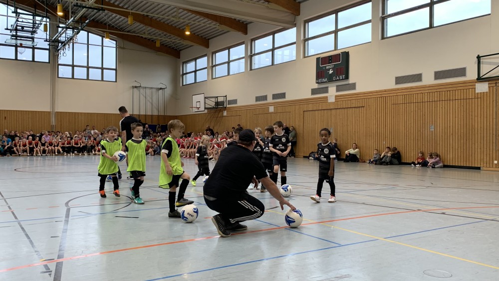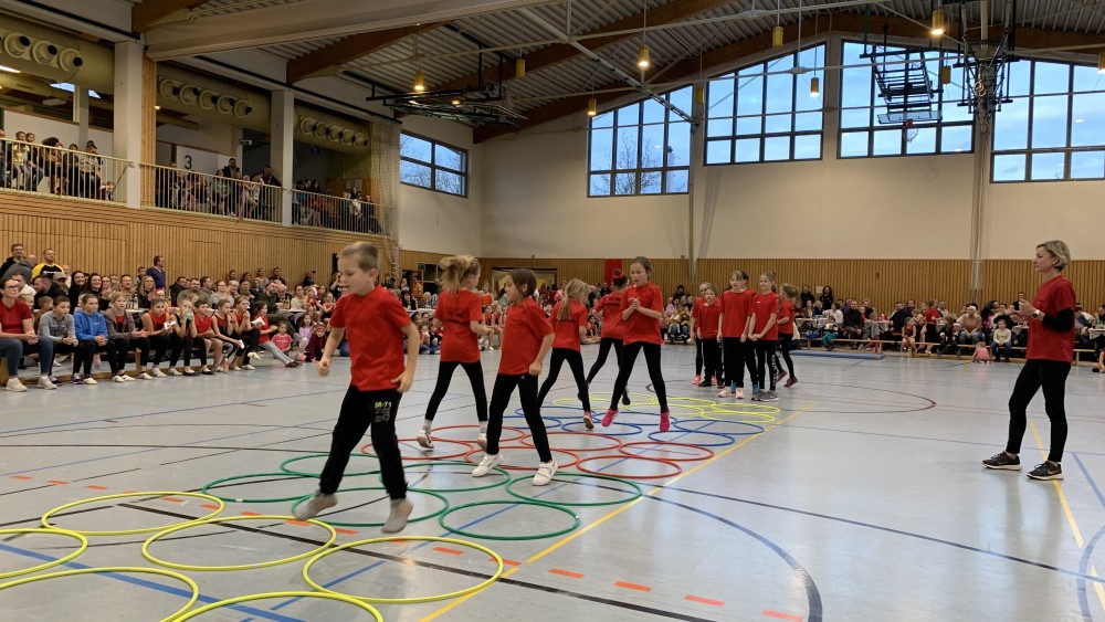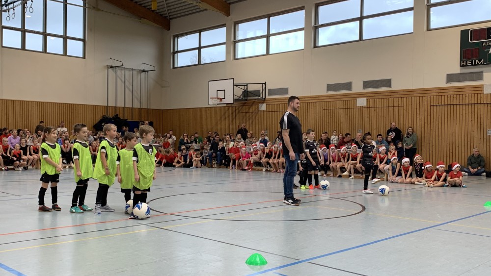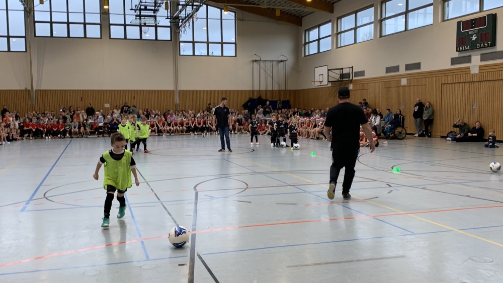 Angefangen mit den Vorschulkindern, die begeistert einen Bewegungstanz darboten, gefolgt von der F-Jugend der Fußballkinder. Sie zeigten, dass man auch in der Halle Tore schießen kann.