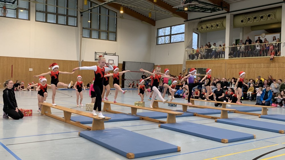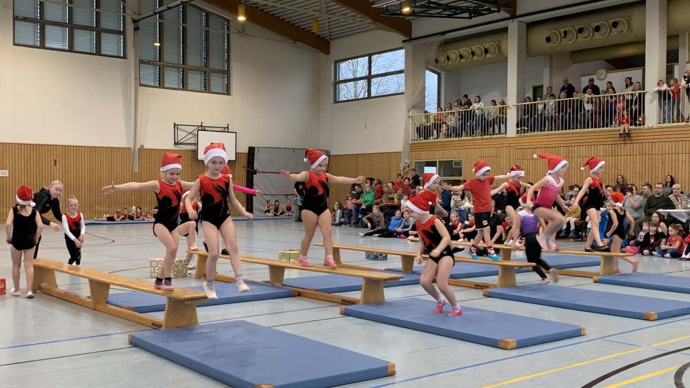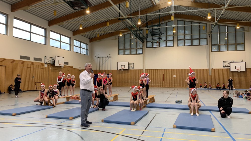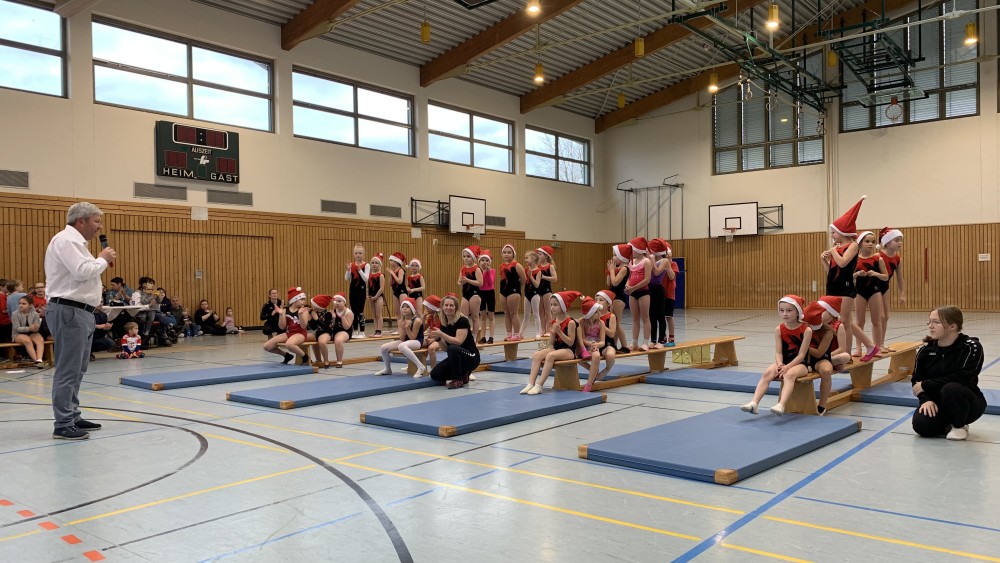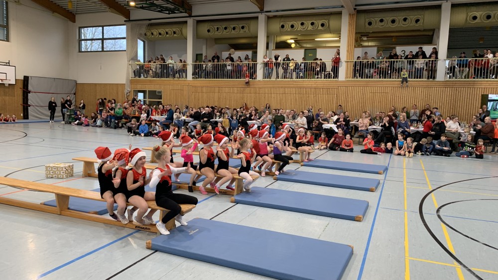 Traditionell am 2. Advent fand das „Weihnachtsturnen“ in der neuen Turnhalle statt. Der 1. Vorsitzende Rüdiger Schuler konnte ein großes Publikum begrüßen, die Halle war bis auf den letzten Platz gefüllt. Er führte zusammen mit der Abteilungsleiterin der Turnabteilung, Dagmar Kötzel, durch das Programm.